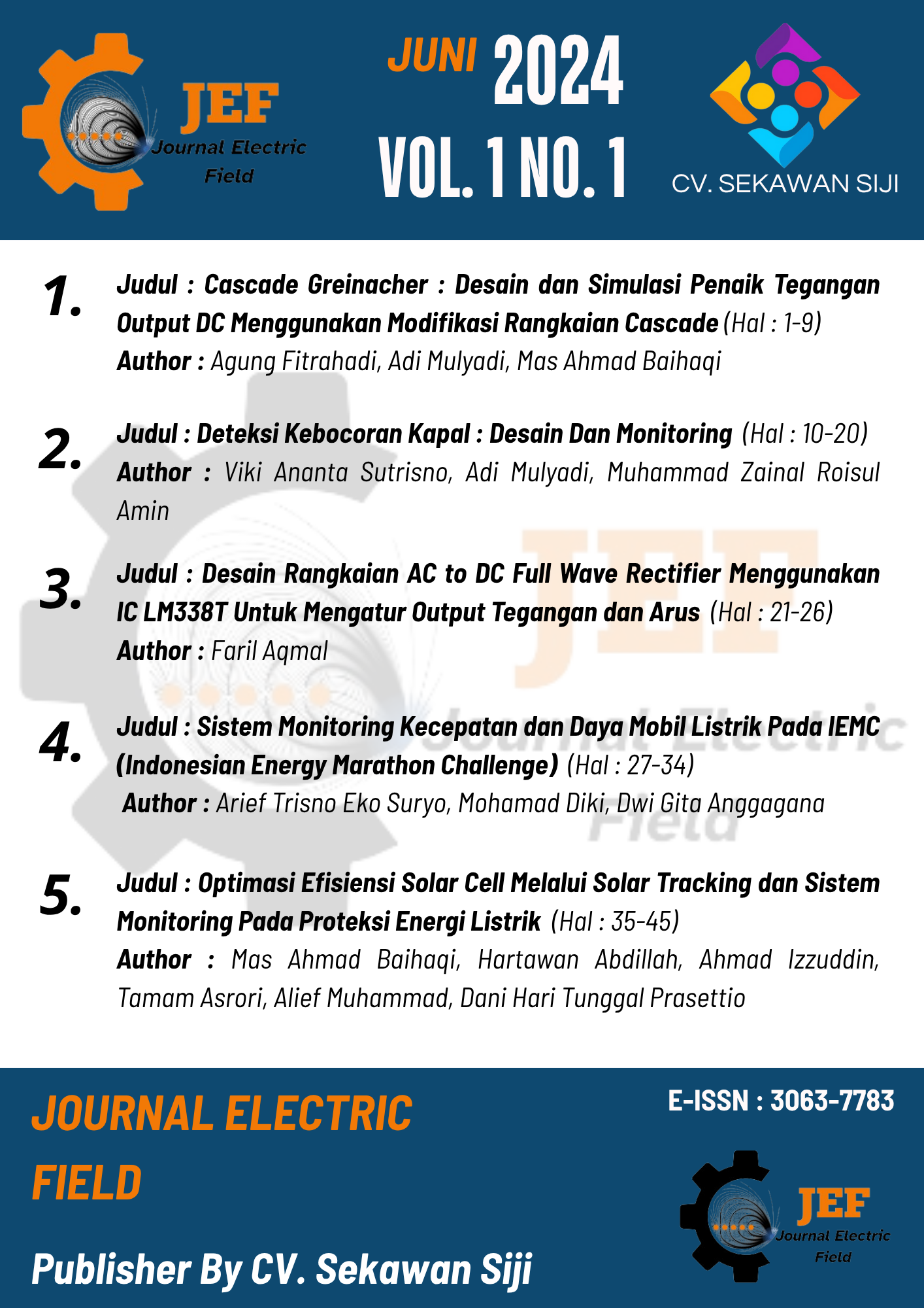 Vol. 1 No. 1 (2024): Journal Electric Field